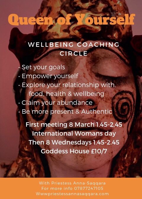 As part of the Goddess Houses celebration of International woman’s day on March the 8 th I’m offering a woman’s wellbeing coaching course titled Queen of your self .